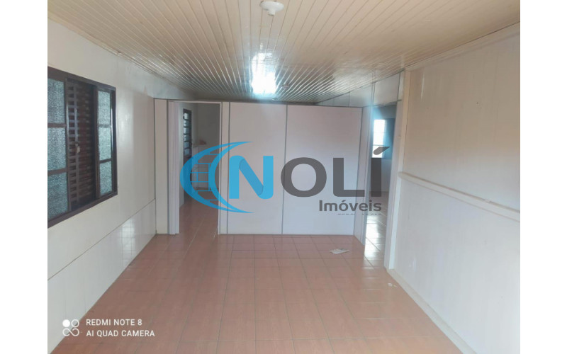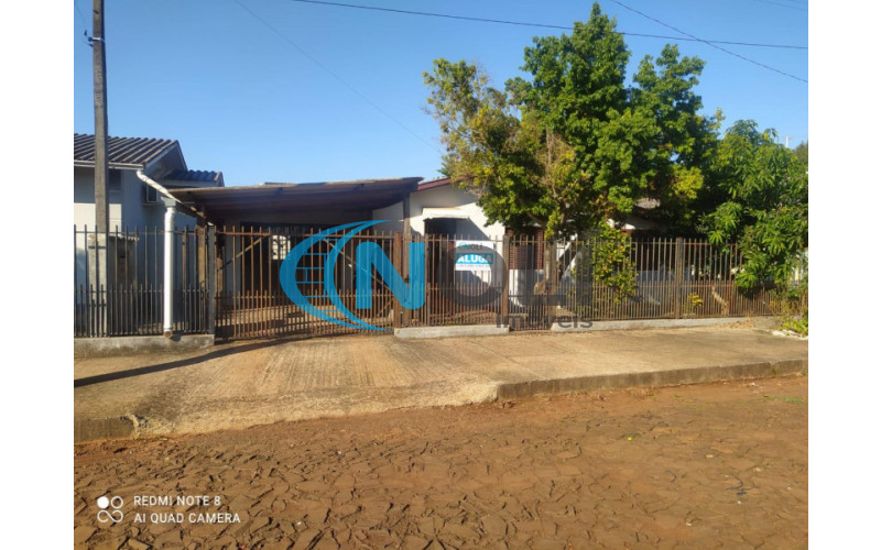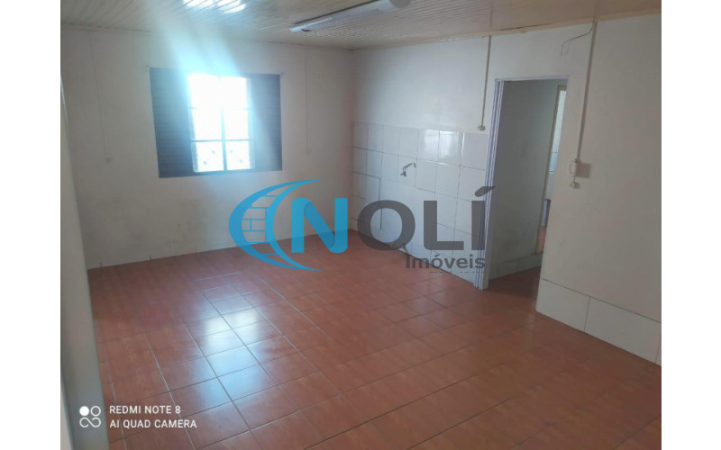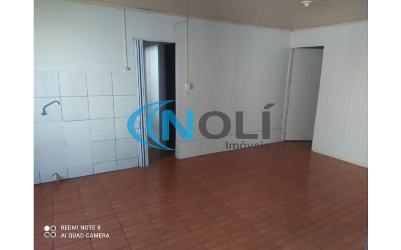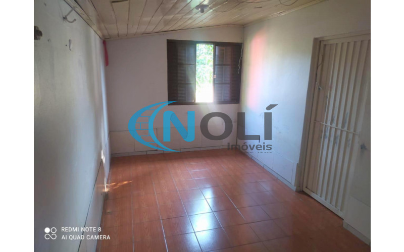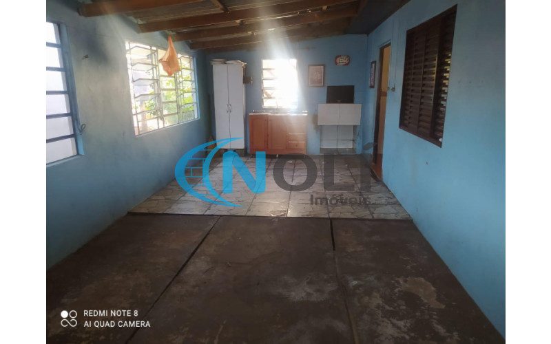 CASA DE ALVENARIA : 2 dormitórios, sala cozinha, banheiro, lavanderia, garagem com churrasqueira e pátio na frente.