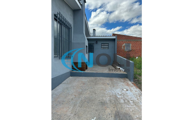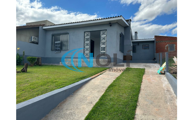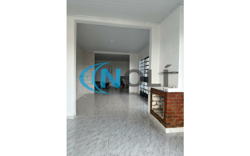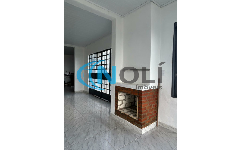 Casa de alvenaria (Nova) contendo: 2 dormitórios, sala de estar com lareira, cozinha, festeiro amplo com bancada, pia de inox, banheiro social, amplo, lavanderia, garagem aberta e churrasqueira.