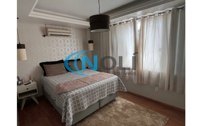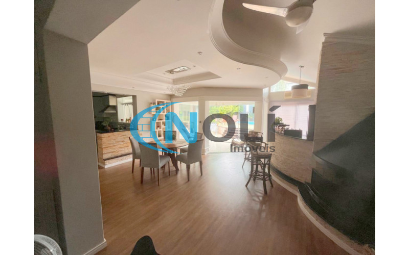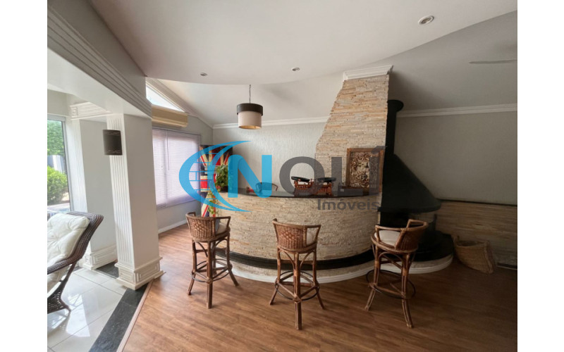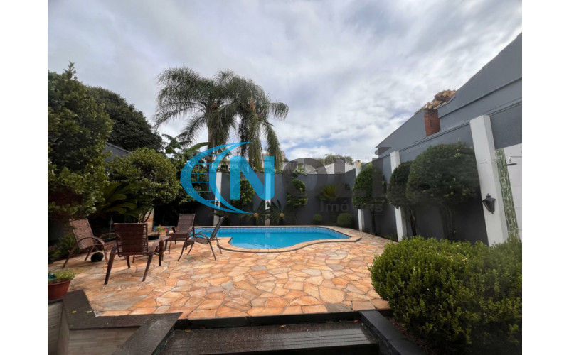 Casa de Alvenaria (Alto Padrão) contendo: 3 dormitórios sendo 1 suíte, 4 banheiros, 1 lavabo, 3 salas, sala da frente com janelas de frente para rua, sala de TV, sala de inverno, bancada de granito, churrasqueira, piscina pátio dos fundos arborizada e garagem.