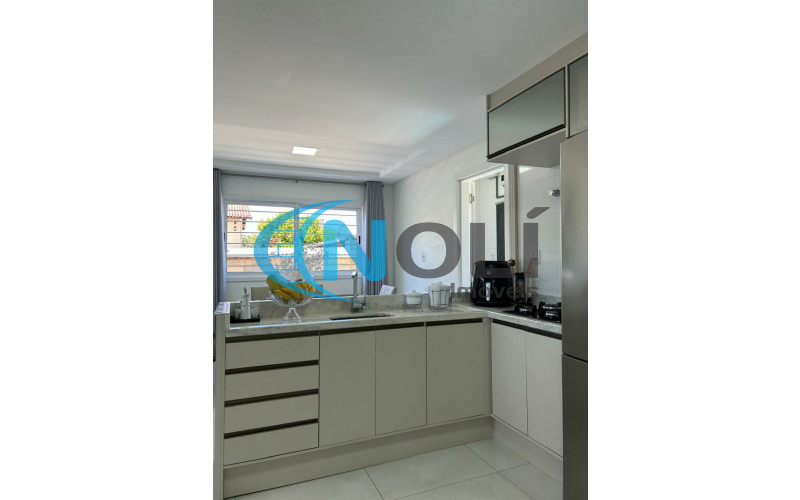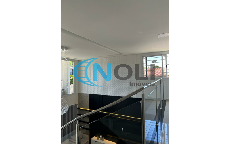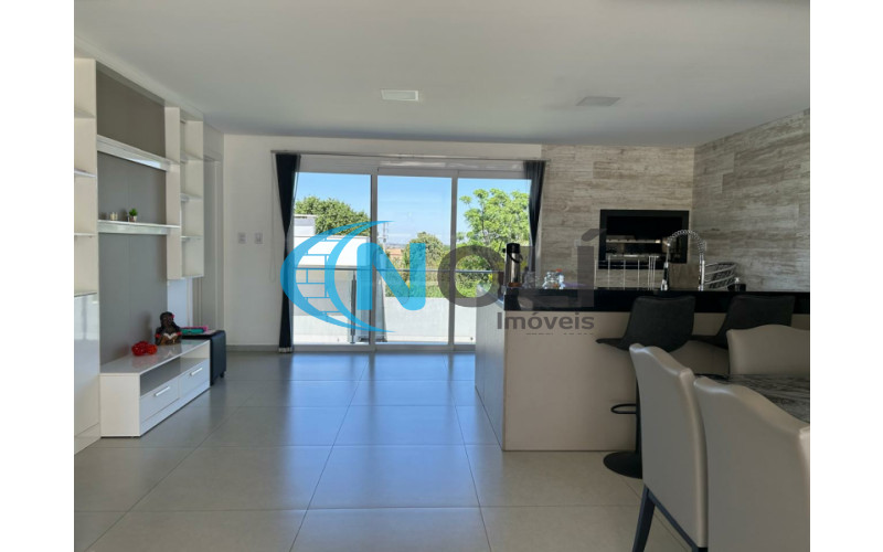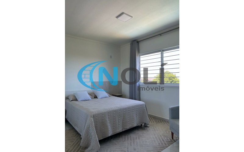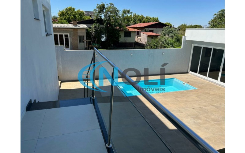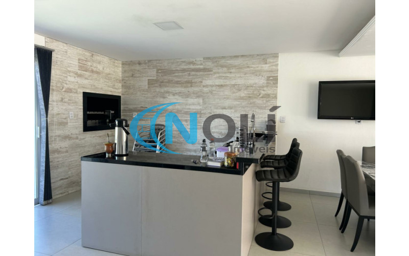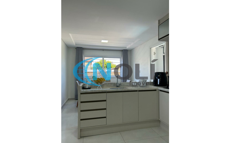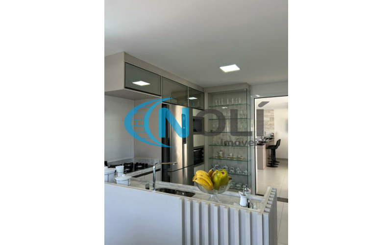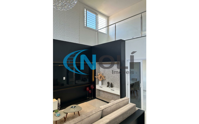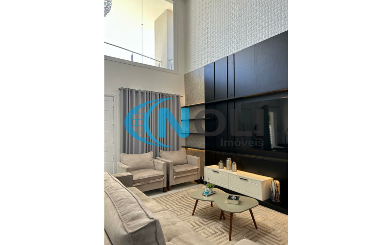 Térreo: Garagem coberta para 2 carros (lado a lado),espaço gourmet/festeiro com bancada de granito, churrasqueira elétrica e móveis sob medida, banheiro social, sacada frontal com vista para a piscina, cozinha completa, ampla e bem iluminada, equipada com móveis planejados, lavanderia com armários embutidos, sala de TV com mobiliário planejado e sistema de energia solar com 8 placas instaladas. 2º Piso: escada em mármore, corredor amplo em formato “L” e 3 suítes mobiliadas, sendo uma delas com closet.